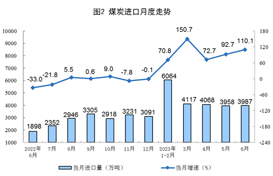 原煤生產(chǎn)穩(wěn)定增長,進(jìn)口高位增長。上半年,生產(chǎn)原煤23.0億噸,同比增長4.4%。進(jìn)口煤炭2.2億噸,同比增長93.0%。6月份,生產(chǎn)原煤3.9億噸,同比增長2.5%。