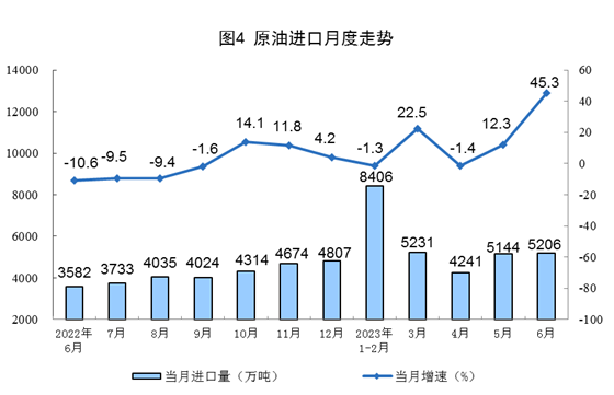進(jìn)口數(shù)據(jù)來源于海關(guān)總署,其中2023年6月份數(shù)據(jù)為快訊數(shù)據(jù)。